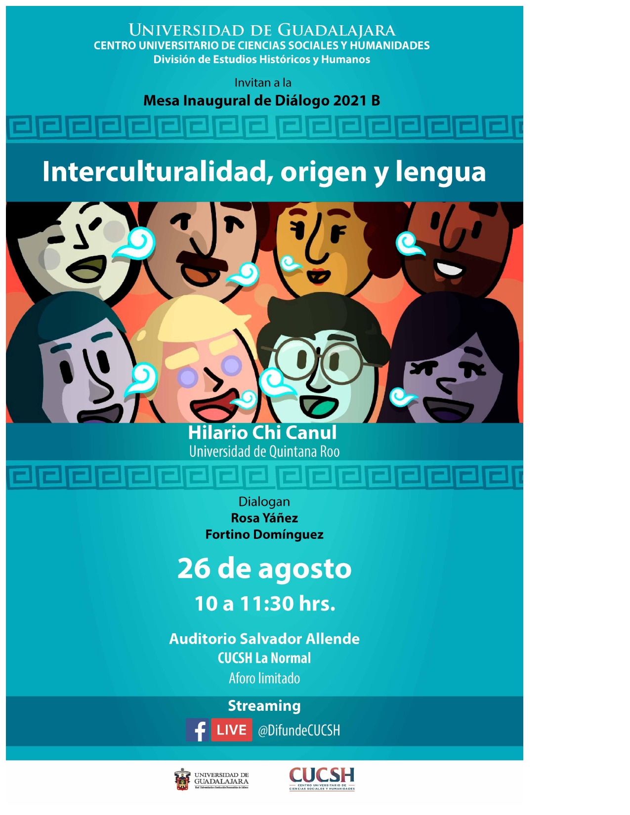 El próximo jueves 26 de agosto se desarrollará una mesa de diálogo virtual titulada: «Interculturalidad, origen y lengua» y se contará con la participación de Hilario Chi Canul, Rosa Yáñez y Fortino Domínguez.