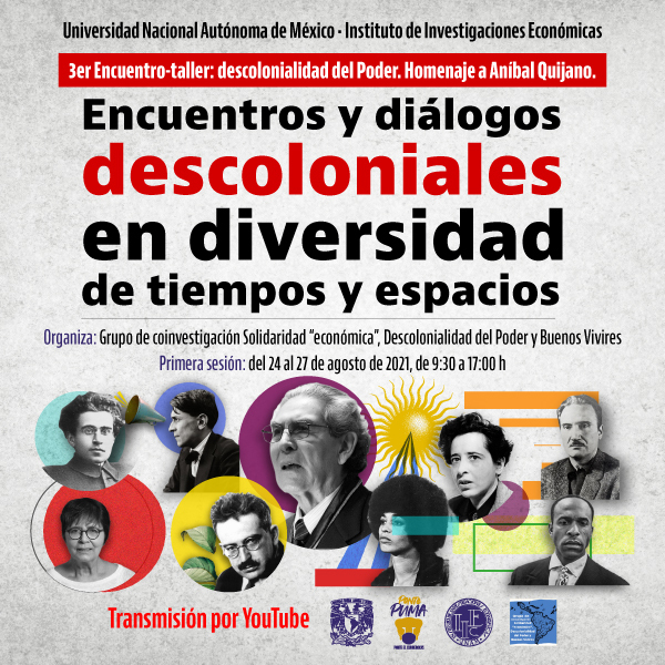El Instituto de Investigaciones Económicas de la Universidad Nacional Autónoma de México convoca al 3er Encuentro-taller: descolonialidad del poder. Homenaje a Aníbal Quijano. Encuentro y diálogos descoloniales en diversidad de tiempos y espacios.