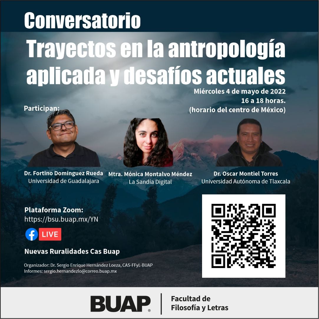 El próximo miércoles 4 de mayo de 2002 a las 16:00 horas vamos a participar en un conversatorio virtual organizado por los compañeros de la Benemérita Universidad Autónoma de Puebla en específico desde el espacio de las Nuevas Ruralidades Cas Buap. Todos invitados