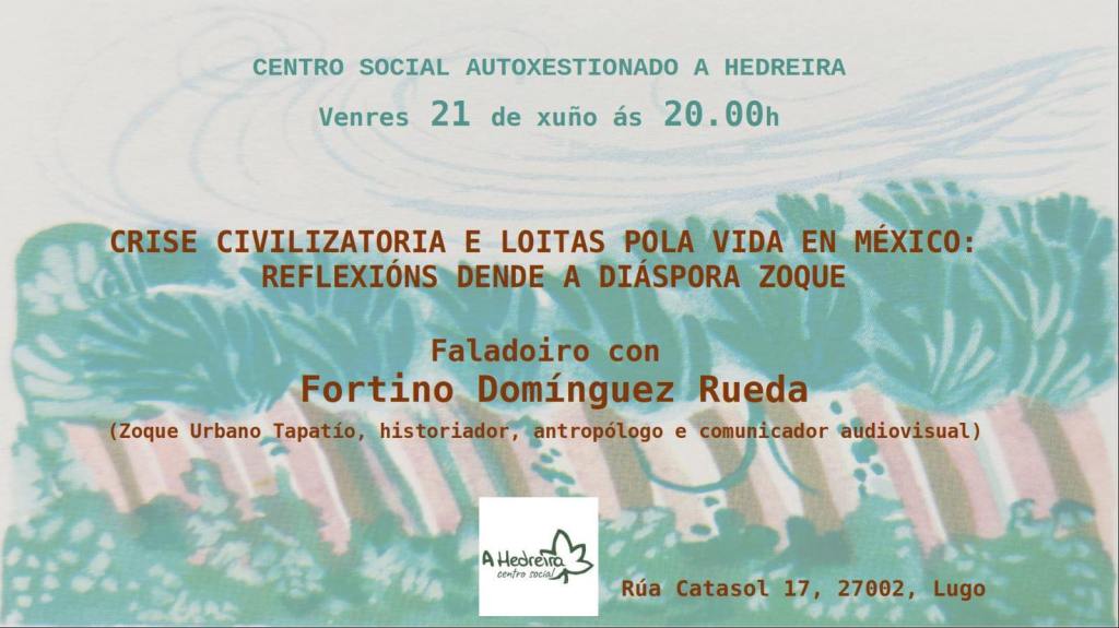 El próximo viernes 21 de junio vamos a tener la fortuna de conversar con los compañerxs del Centro Social Autogestionado de A Hedreira, (Rúa Catasol, Lugo, España).