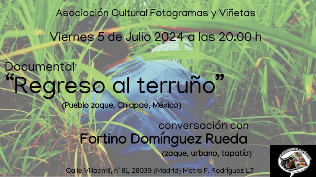Publicado el 4 julio, 2024 por fortinodr El viernes 5 de julio de 2024 vamos a proyectar el documental Regreso al terruño. La cita será en la Asociación Cultural Fotogramas y Viñetas el cual se encuentra ubicado en la calle Villaamil, No. 81, 28039, Madrid España a las 20:00 hrs. (Metro F. Rodríguez L7) Por ahí nos vemos y escuchamos. Compártelo: Haz clic para compartir en X (Se abre en una ventana nueva) X Haz clic para compartir en Facebook (Se abre en una ventana nueva) Facebook Me gusta Cargando... Relacionado