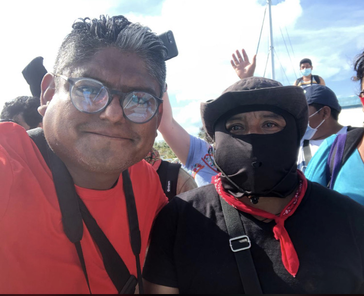Durante el 2021 tuve la fortuna de colaborar con los medios libres en la cobertura informativa sobre el viaje que los zapatistas desarrollaron hacia Europa. Fue una experiencia muy enriquecedora, ya que además de aprender del oficio de reportear, tomar fotos, vídeo, editar y publicar, pude ver con mis propios ojos el momento cuando los compas emprenden el viaje. Pudimos ver como los pueblos mayas zapatistas le dan vuelta a la tortilla, eso que en los círculos urbanos llaman decolonialidad.